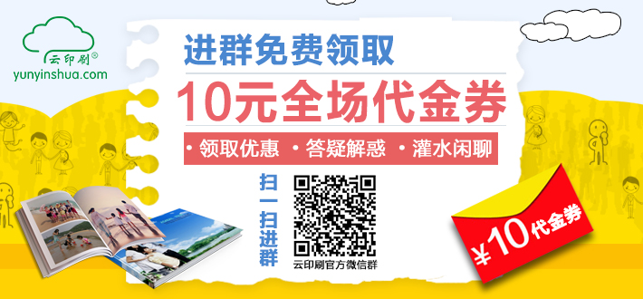 ? ? ? ?號外,號外!進(jìn)群福利,掃一掃進(jìn)入云印刷官方微信群,免費(fèi)領(lǐng)取1張10元面額代金券,全場無門檻使用,你還不來!不定期還有各種優(yōu)惠,僅在本群!