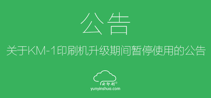 ? ? ? 您好!云印刷生產(chǎn)中心的柯尼卡美能達KM-1噴墨印刷機將于5月18日-6月3日期間進行軟件系統(tǒng)和硬件設(shè)備升級,升級期間將暫停使用,屆時所下的訂單將安排至其他印刷機進行生產(chǎn),如給您造成不便敬請諒解!