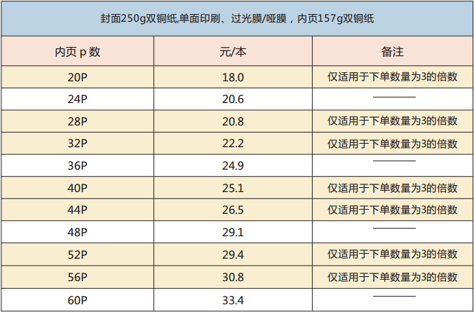 分享此信息 A4畫冊 宣傳冊 普通會員 價格表>> 紙張:封面250G內(nèi)頁157G尺寸:210mm *?285mm 數(shù)碼快印 1.騎馬釘畫冊 2.鎖線精裝畫冊 3.鎖線膠裝畫冊 4.對裱簡裝畫冊 5.對裱精裝畫冊 合版(拼版)印刷 紙張:封面200G內(nèi)頁157G/250G內(nèi)頁157G/250G內(nèi)頁200G/300G內(nèi)頁157G ? 尺寸:210mm *?285mm 1.騎馬釘畫冊(合版) 2.膠裝畫冊(合版) 3.鎖線膠裝畫冊(合版) *成為高級會員享受更多折扣 上一篇金九銀十,好消息不斷!云印刷新產(chǎn)品上線了下一篇面對同行印刷價格戰(zhàn),應(yīng)該怎么辦?
