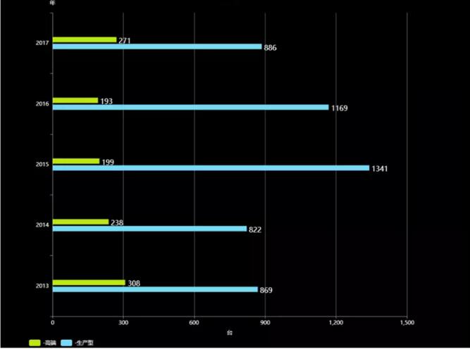 到2017年7月,單張紙高端彩色數(shù)字印刷設(shè)備(圖中綠柱)裝機(jī)總量達(dá)到2096臺(tái),在上年度的基礎(chǔ)上增加了271臺(tái),增長(zhǎng)率接近15%,比上年度的增長(zhǎng)率增長(zhǎng)了3個(gè)百分點(diǎn),是近三年中新增量最高的一年。