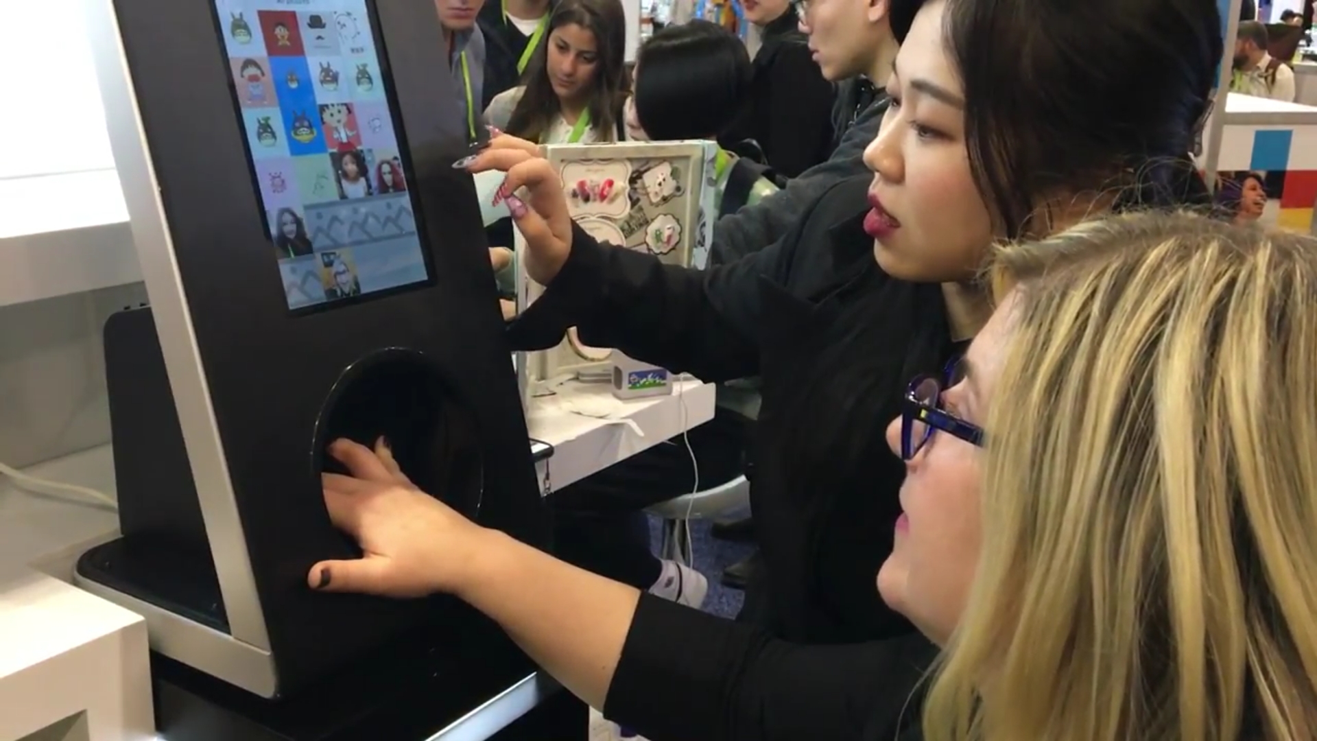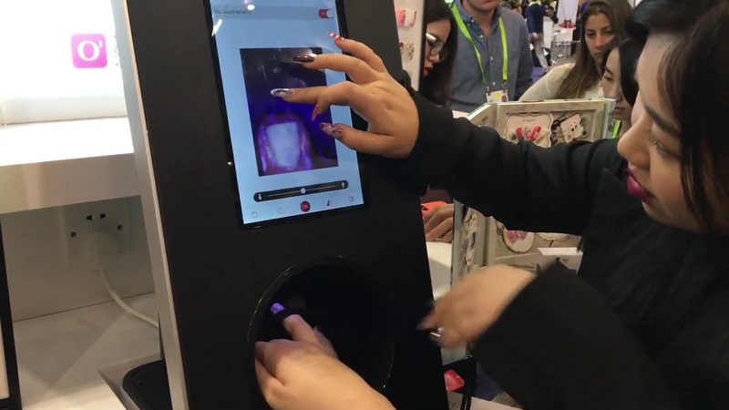一位參觀2018CES展的女性觀眾嘗試了這項新的美甲技術(shù)。