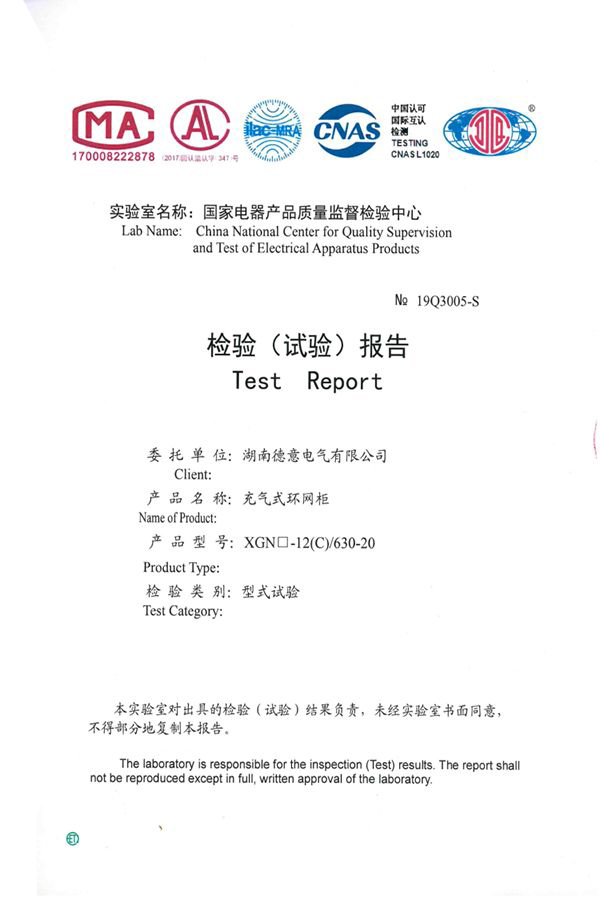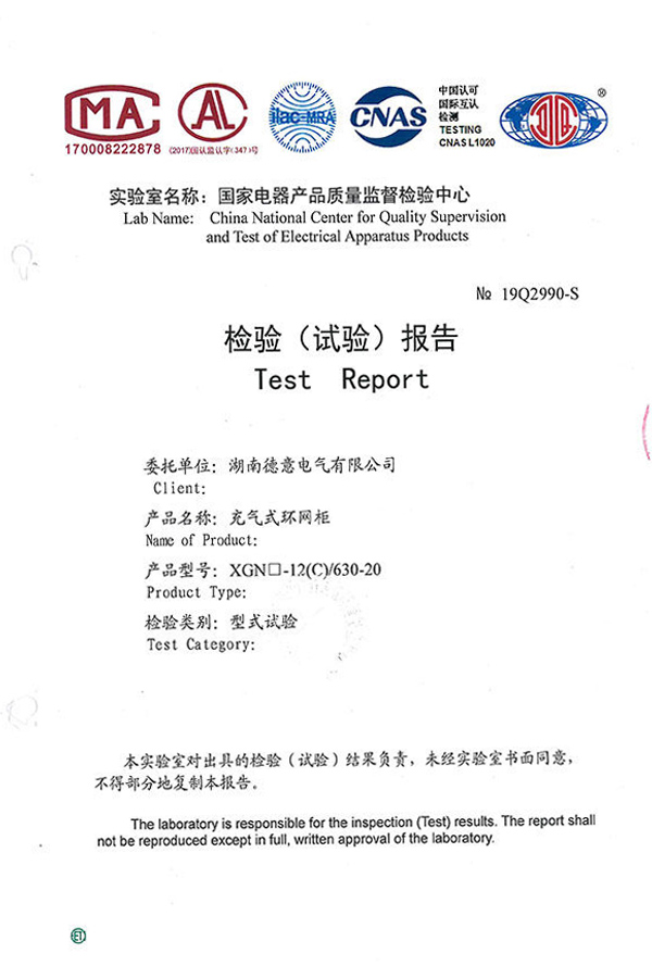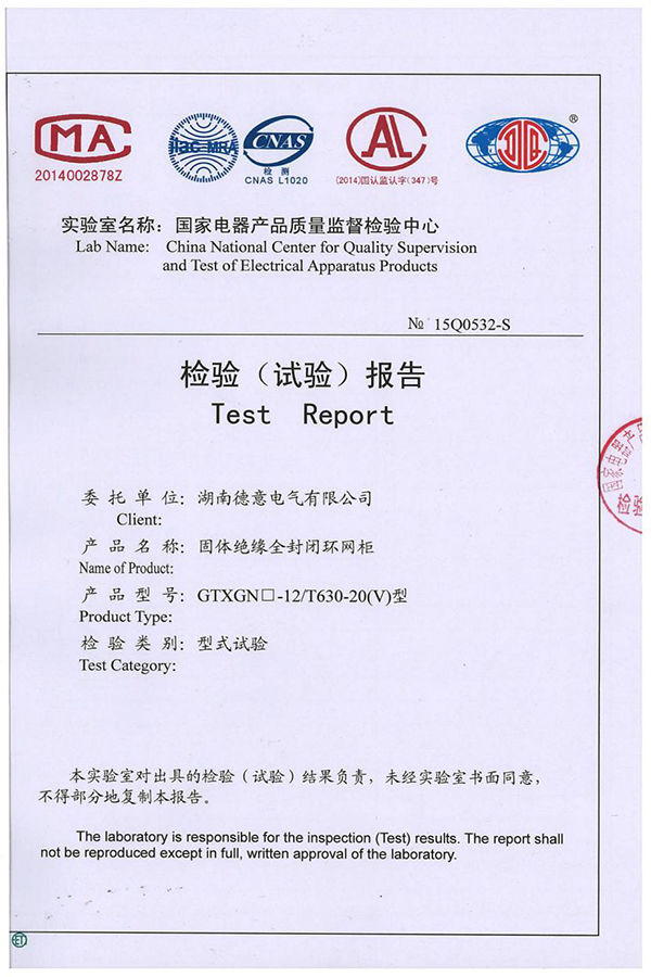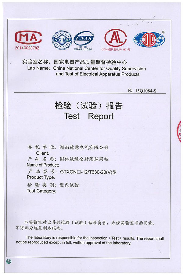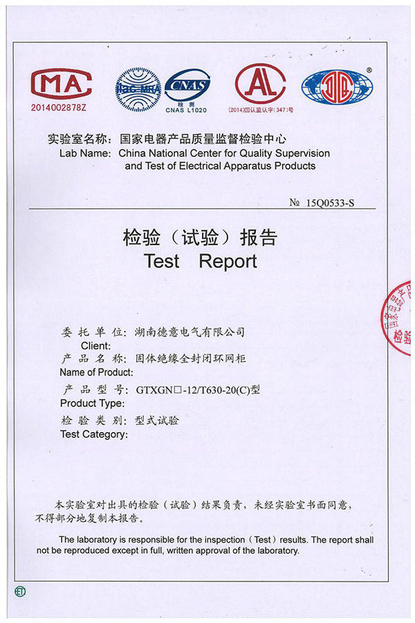 GTXGN□-12/T630-20(C)固體絕緣全封閉環(huán)網(wǎng)柜試驗報告
