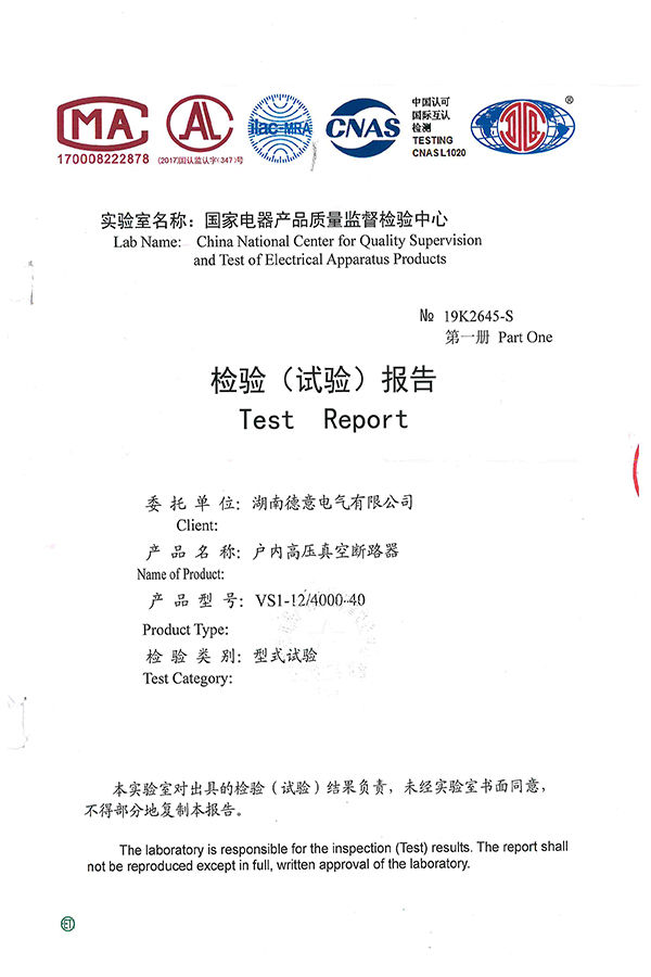 VS1-12/4000-40戶內(nèi)高壓真空斷路器試驗報告