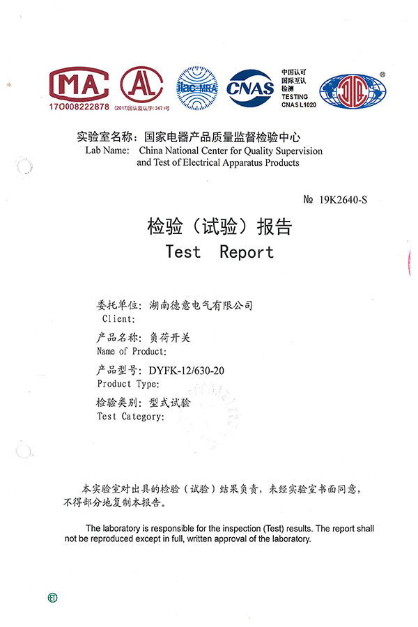 DYFK-12/630-20負(fù)荷開關(guān)試驗報告