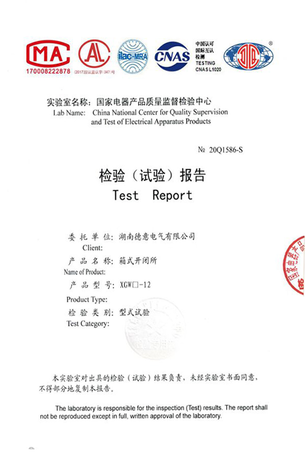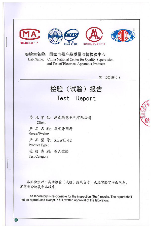 XGW□-12箱式開閉所試驗報告(內(nèi)部電弧試驗)