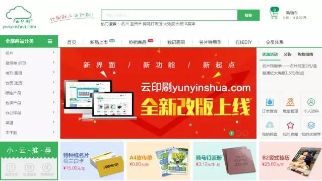 元旦來臨之際,云印刷網(wǎng)(www.syyouthff.com)經(jīng)過三個(gè)多月緊鑼密鼓地設(shè)計(jì)、修改、測(cè)試,終于趕在2016年的尾巴完成了華麗轉(zhuǎn)身,成功改版上線,以嶄新的面貌面向大家,站在新的起點(diǎn)為用戶帶來更卓越的購物體驗(yàn)。