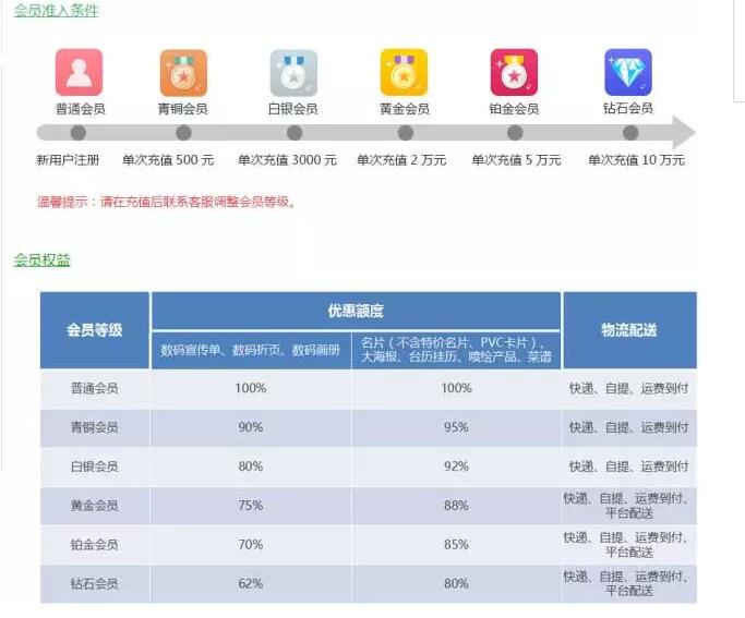 此外,針對(duì)會(huì)員體系調(diào)整,在普通會(huì)員的基礎(chǔ)上,新增了青銅、白銀、黃金、鉑金、鉆石五個(gè)會(huì)員等級(jí),每個(gè)等級(jí)均有對(duì)應(yīng)的優(yōu)惠折算方式,級(jí)別越高,享受的優(yōu)惠折扣越大。
