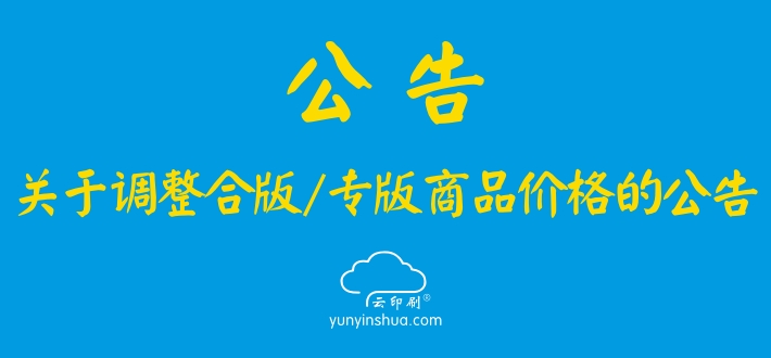 ? ? ? ?由于受原紙成本及輔料價格急劇上漲而導(dǎo)致生產(chǎn)成本的上升,為穩(wěn)定持續(xù)地向客戶提供高品質(zhì)的產(chǎn)品,自2017年3月10日起,云印刷網(wǎng)將對合版商品(包含合版單張、合版騎馬釘畫冊、合版無線膠裝畫冊)和專版商品的價格進行適當(dāng)上調(diào),上調(diào)金額以屆時網(wǎng)站顯示的價格為準(zhǔn)。